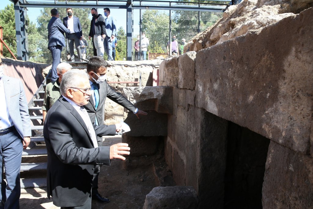 Kayseri Büyükşehir Belediye Başkanı Dr. Memduh Büyükkılıç, Seyyid Burhaneddin Hazretleri’nin de türbesinin bulunduğu mezarlık içerisinde Selçuklu dönemine ait olduğu anlaşılan ve kazı çalışmaları 40 gün süren türbeyi yerinde inceledi. Başkan Büyükkılıç, “Kayseri’de tarihimize sahip çıkmaya, geçmişimize ait eserleri ortaya çıkarmaya devam ediyoruz” dedi.