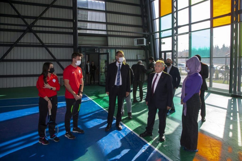 Burada açıklamalarda bulunan Başkan Büyükkılıç, hizmete açılan projelerin resmi açılışının daha sonra yapılacağını belirterek, “İki tane kapalı tenis kortumuz hizmete açıldı. İnşallah daha sonra resmi açılışını Sayın Cumhurbaşkanımızın yapacağı projelerin arasında kamuoyuna arz edeceğiz. Biz hizmetimizi bir an evvel başlatmak amacıyla şuanda çalışmalarımızı tamamlamış olduk. Şehrimize hayırlı uğurlu olsun” diye konuştu.