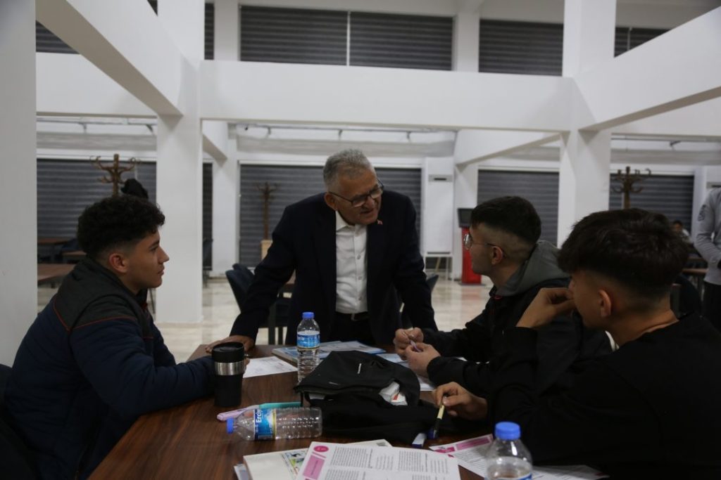 Ders çalışmak ve kitap okumak için kütüphaneye gelen öğrenciler ile yakından ilgilenerek, herhangi bir talepleri olup olmadığını soran, öğrencilerin ders durumları ve çalışmaları hakkında da bilgiler edinen Başkan Büyükkılıç, onlara kendilerini geliştirmeleri yönünde tavsiyelerde bulundu.