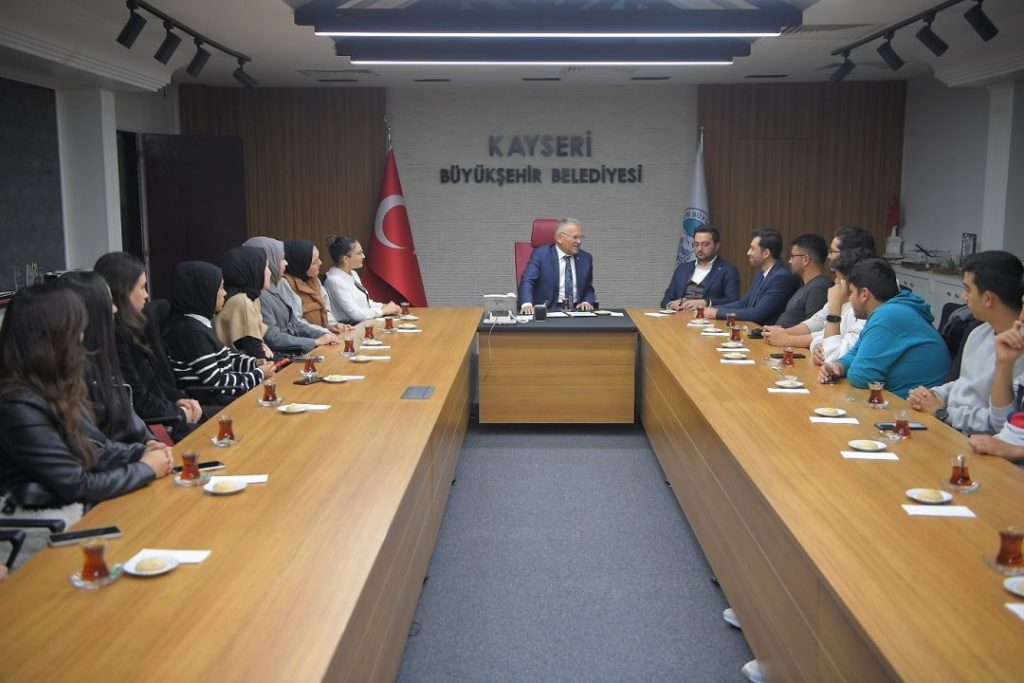 Kayseri Büyükşehir Belediye Başkanı Dr. Memduh Büyükkılıç, Erciyes Üniversitesi İktisadi ve İdari Bilimler Fakültesi öğrencilerini makamında kabul etti. Gençlerle sohbet eden Başkan Büyükkılıç, Büyükşehir Belediyesi’nin yürüttüğü çalışmalarla ilgili gençlere bilgiler aktararak, nasihatlerde de bulundu.