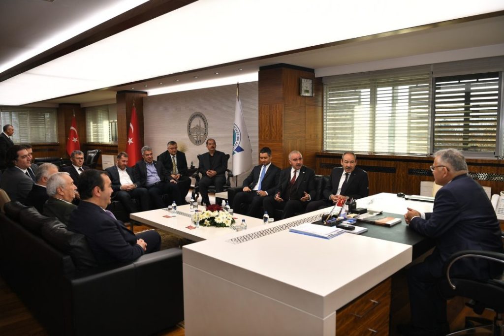 Kayseri Büyükşehir Belediye Başkanı Dr. Memduh Büyükkılıç, Kayseri Ticaret Odası (KTO) Başkanı Ömer Gülsoy, KTO Meclis Başkanı Cengiz Hakan Arslan ve yeni yönetimini makamında kabul etti.