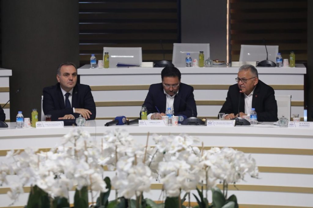 Erciyes Üniversitesi Senato Salonu’nda gerçekleşen toplantıya Büyükşehir Belediye Başkanı Dr. Memduh Büyükkılıç ve Kayseri Valisi Gökmen Çiçek’in yanı sıra Erciyes Üniversitesi Rektörü Prof. Dr. Fatih Altun, Kayseri Üniversitesi Rektörü Prof. Dr. Kurtuluş Karamustafa, Abdullah Gül Üniversitesi Rektörü Prof. Dr. Cengiz Yılmaz, Nuh Naci Yazgan Üniversitesi Rektör Yardımcısı Prof. Dr. Erkan Köse ile Melikgazi Belediye Başkanı Mustafa Palancıoğlu, Kocasinan Belediye Başkanı Ahmet Çolakbayrakdar, Talas Belediye Başkanı Mustafa Yalçın, Büyükşehir Belediyesi Genel Sekreter Yardımcısı Serdar Öztürk, İŞKUR İl Müdürü Ayşe Ak, ORA-KAF’23 paydaş sivil toplum teşkilatları temsilcileri ile akademisyenler katıldı.