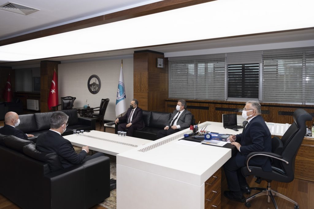 Başkan Büyükkılıç, Büyükşehir Belediyesi’nde AK Parti İl Başkanı Şaban Çopuroğlu, Melikgazi Belediye Başkanı Mustafa Palancıoğlu, Kocasinan Belediye Başkanı Ahmet Çolakbayrakdar ve Talas Belediye Başkanı Mustafa Yalçın bir araya geldi.