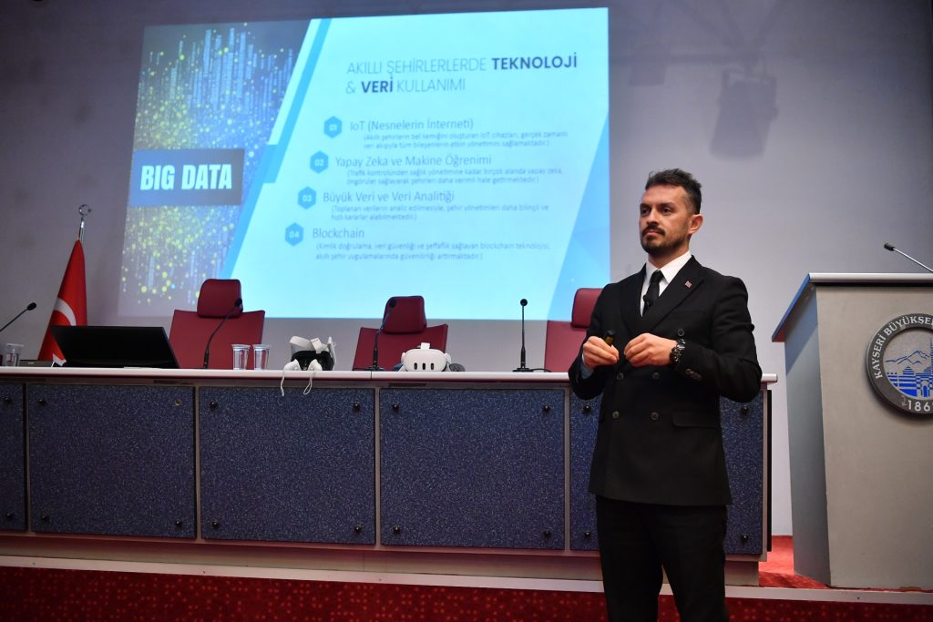 Sunumda, Akıllı Şehircilik ve Bilgi İşlem Daire Başkanı Abdullah Avan, akıllı şehir uygulamalarının gelecekteki rolüne ve bu süreçte teknolojinin nasıl kullanılacağına dair önemli bilgiler paylaştı.