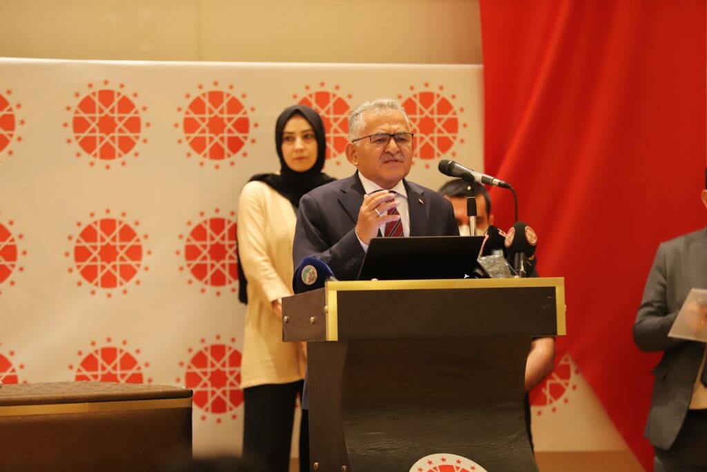 “Mimar Sinan’ımızın Ağırnas’tan doğup, Erciyes’imizden ilhamını alıp Süleymaniye’yi inşa ettiği gibi, Kayseri’miz Anadolu’ya ve ülkemize ışıklar saçan bir şehir olmaya devam ediyor. Özet olarak şöyle diyoruz; Kayseri, büyükşehirlerin konforunu yaşatan, büyükşehirlerin sorununu en az yaşatan diyelim, sorunsuz şehir olmaz, sorunsuz insan olmaz, önemli olan sorunun önceliği ve niteliği bağlamında sorunsuz bir şehir değil ama sorunu en az yaşatan bir şehir olarak rahatlıkla övüneceği bir şehir olarak nitelendirilebilir. 5 üniversitesi, 3 organize sanayisi, 1 serbest bölgesi, 1 teknoparkı var, yeni ihtisas organize sanayi konusunda da çalışmalarımız var. Kayseri endüstrinin, ticaretin, sağlık turizminin ve gastronominin merkezidir. Erciyes Kayak Merkezi’miz 12 ay hizmet yapmak suretiyle Yüksek İstifa Spor Kamplarının merkezi, yayla turizmi ve değişik etkinliklerin merkezidir.”